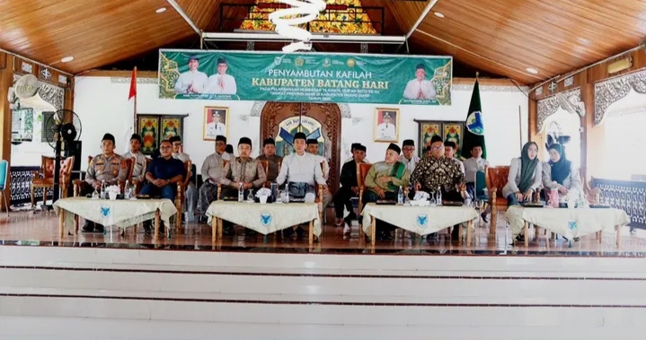 Bupati Kabupaten Batang Hari Muhammad Fadhil Arief didampingi Ketua TP-PKK Zulva Fadhil menyambut kedatangan kafilah pada pelaksanaan MTQ ke-54 tingkat Provinsi Jambi di Kabupaten Muaro Jambi.