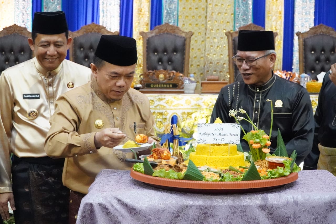 JAMBILIFE.COM – Gubernur Jambi Al Haris mengapresiasi Kabupaten Muaro Jambi, yang berhasil mencatat pertumbuhan ekonomi terbaik di Provinsi Jambi. Hal ini disampaika Gubernur Al Haris didampaingi Istri Hj Hesnidar Haris, SE (Hesti Haris) saat menghadiri peringatan Hari Ulang Tahun (HUT) ke-26 Kabupaten Muaro Jambi, di Gedung DPRD Muaro Jambi, Rabu (22/10/2025).