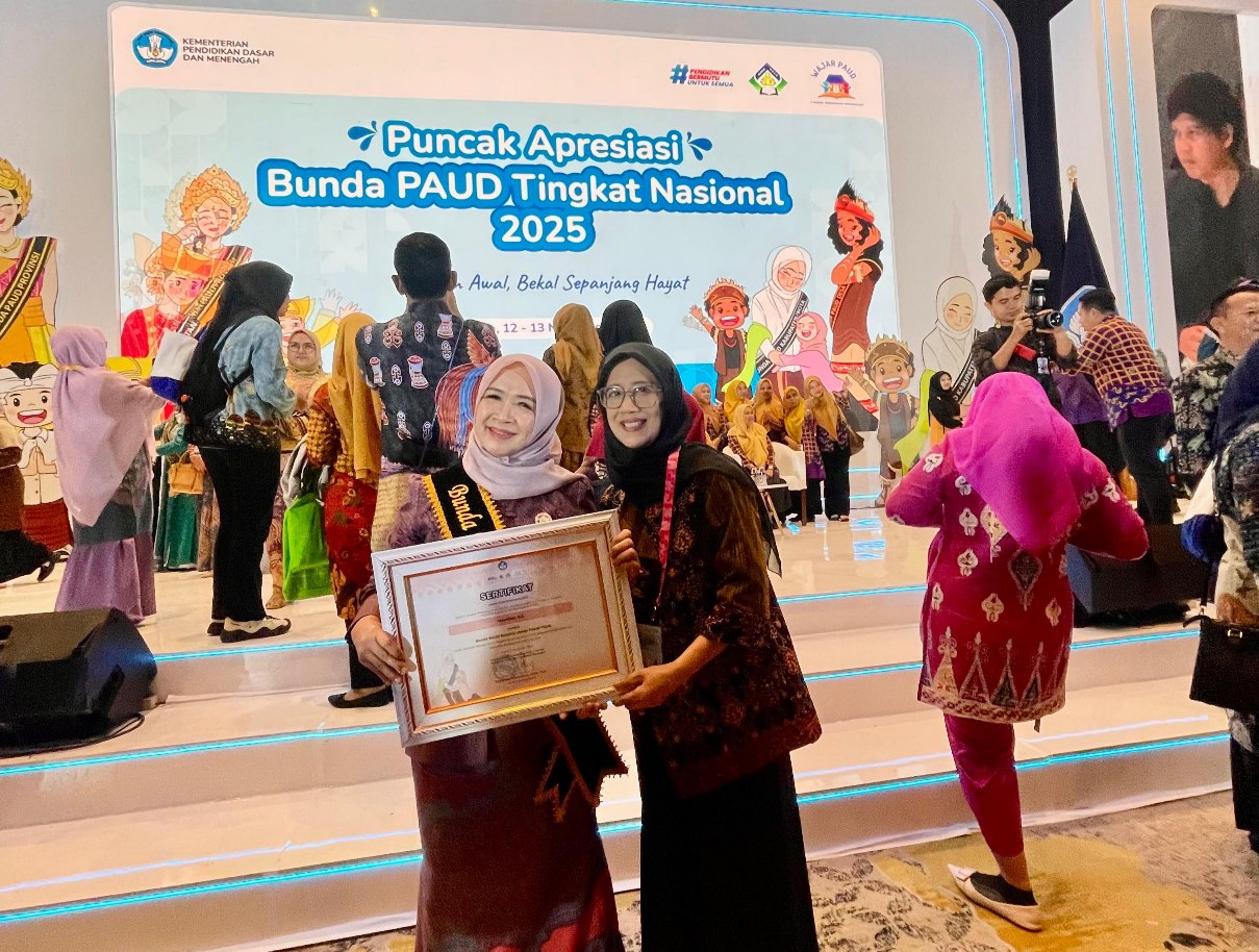 Penghargaan tersebut diserahkan dalam acara Puncak Apresiasi Bunda PAUD Tingkat Nasional Tahun 2025 yang diselenggarakan oleh Kementerian Pendidikan Dasar dan Menengah (Kemendikdasmen) di The Sultan Hotel and Residence Jakarta, Rabu (13/11/2025).
