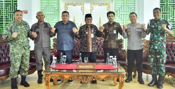 Jumpa pers dipimpin Wali Kota Jambi Maulana, didampingi Wakil Wali Kota Diza Hazra Aljosha, Ketua DPRD Kota Jambi Kemas Faried Alfarelly, Kapolresta Jambi Kombes Pol Boy Sutan Binanga Siregar, dan Kepala Kejaksaan Negeri Jambi Dr. Abdi Reza Fahlewi Junus.