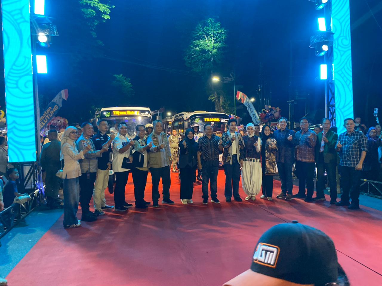 Di depan Tugu Keris Siginjai, Mereka menghadirkan atraksi masih masing. Selain, Karnaval dalam momen ini juga di launching bis listrik trans Bahagia.